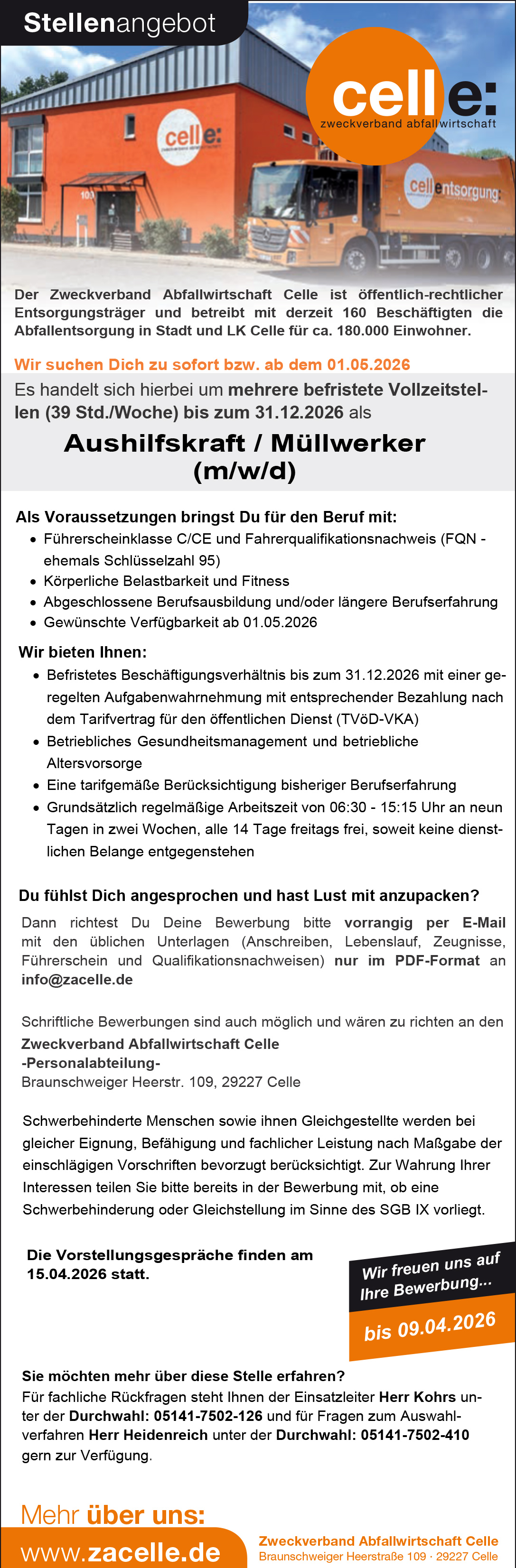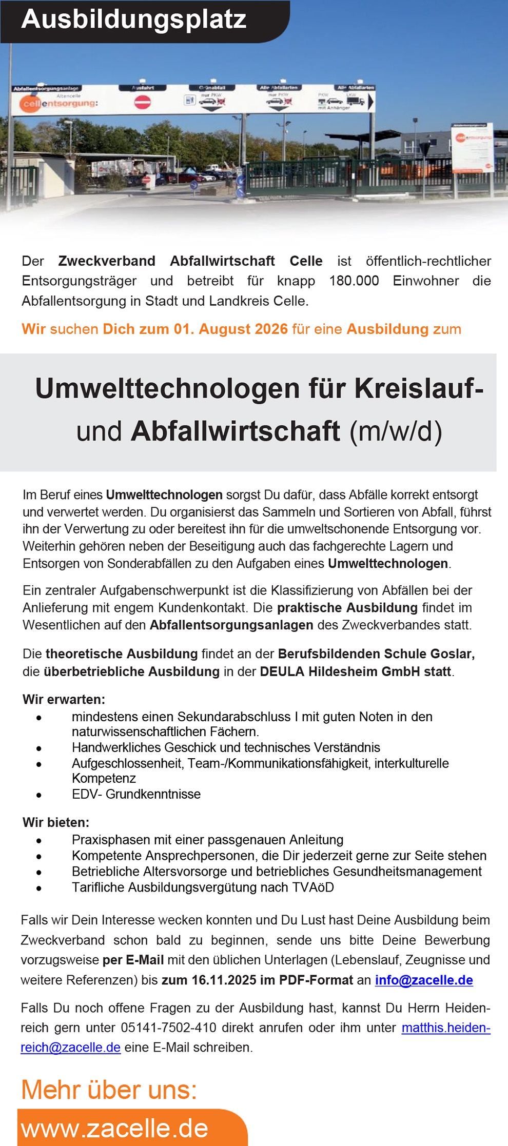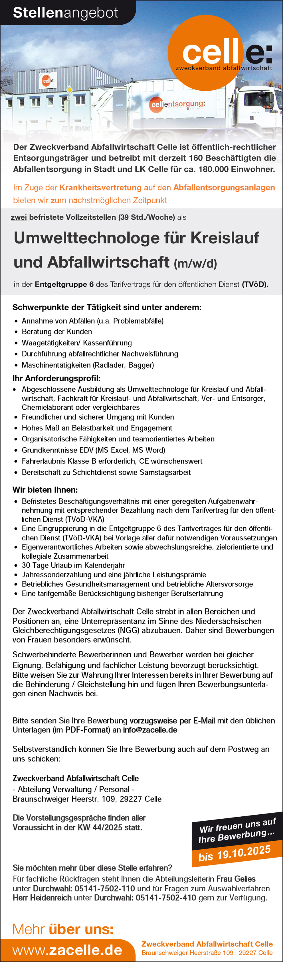 Deine Chance beim Zweckverband Abfallwirtschaft Celle: